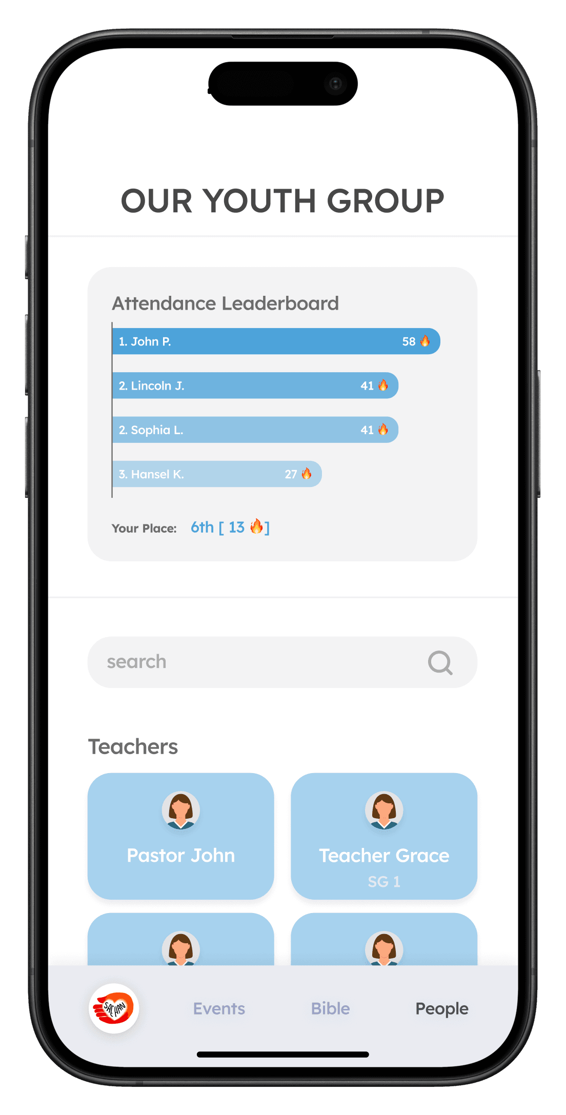 Saehan Youth Group, a local church ministry for middle and high school students, needed an app design that streamlines attendance and increases student engagement.