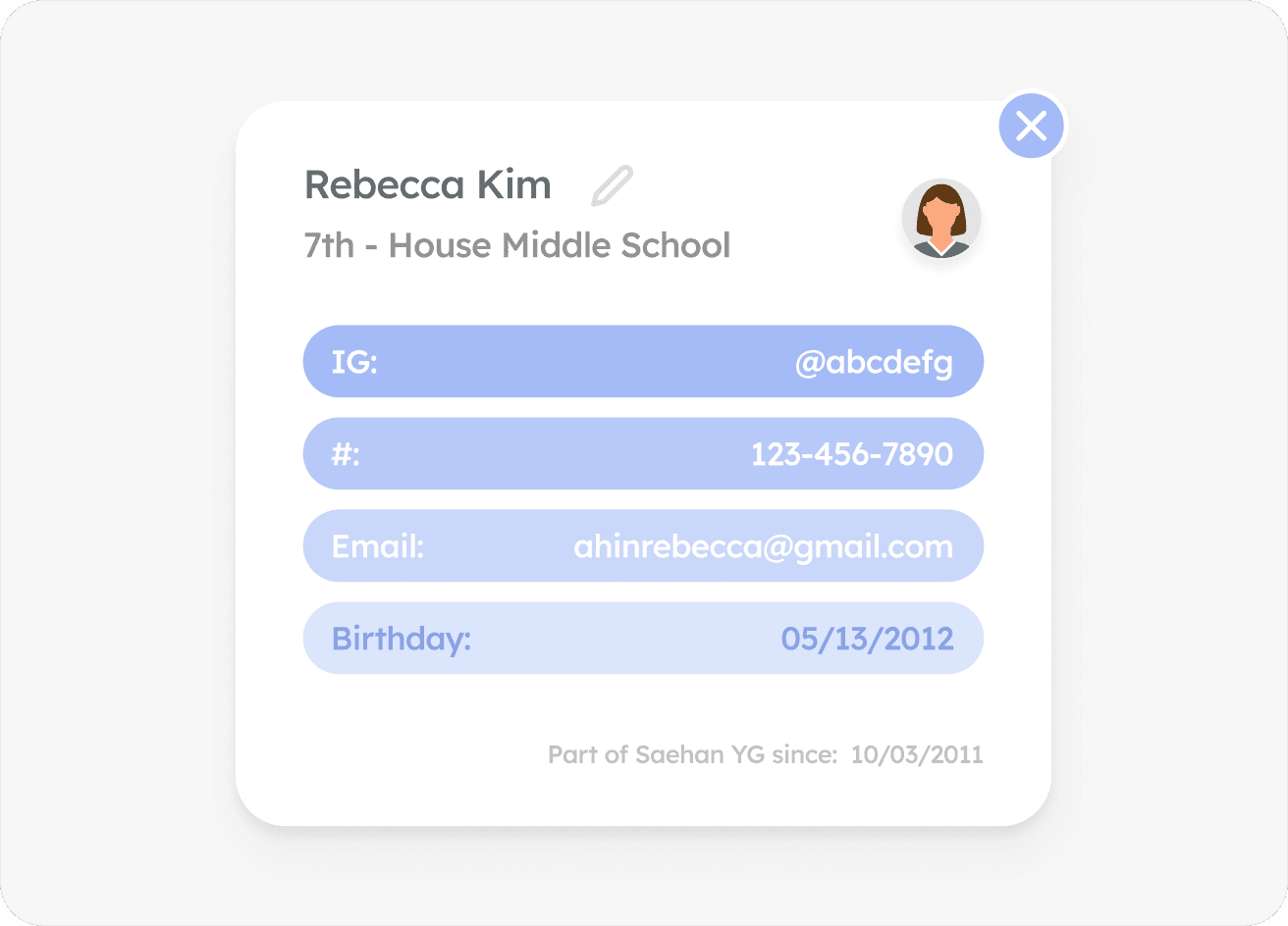 Key info, like social links, birthdays, and contact details, is shown, so students can easily discover shared interests and spark real conversations.