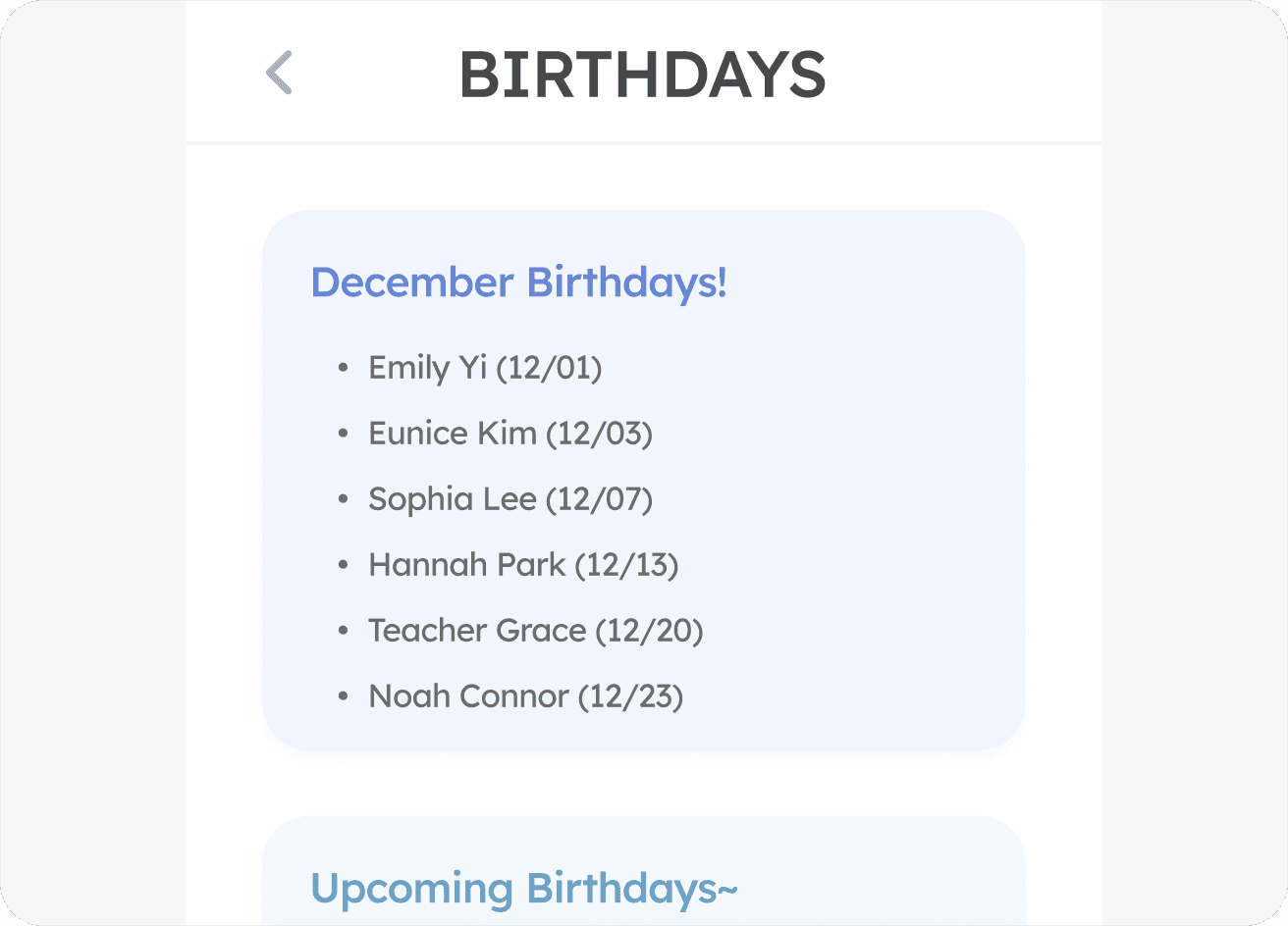 Highlight upcoming birthdays - makes it easy to create moments of connection and community through simple, thoughtful gestures.