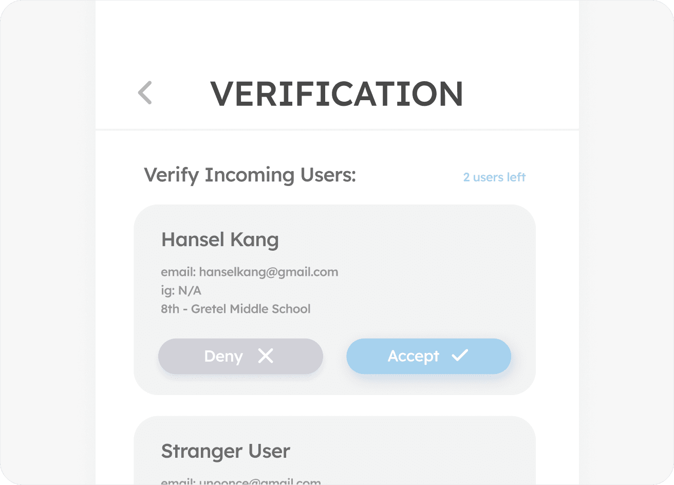 Staff can then verify users by their information and name.